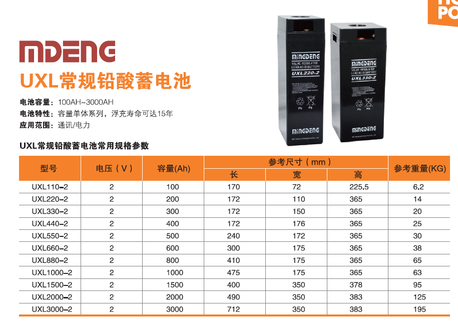 铭登UXL常规铅酸蓄电池