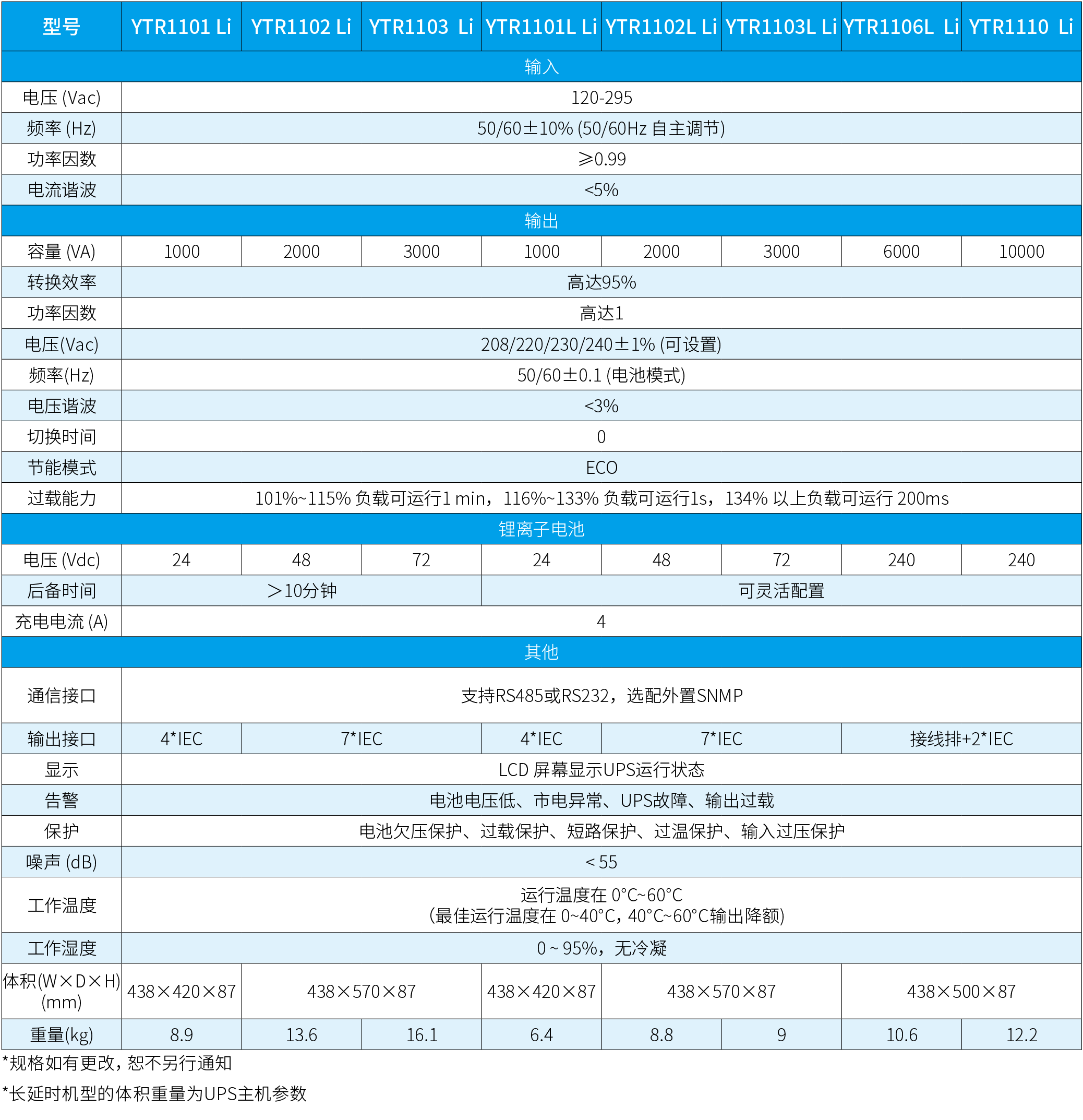 YTR 锂电系列在线式 UPS 1-10kVA