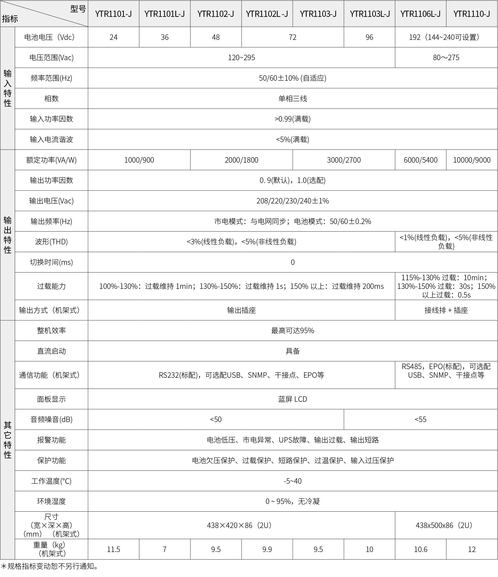 YTR 系列单进单出 UPS(1-10kVA)机架式